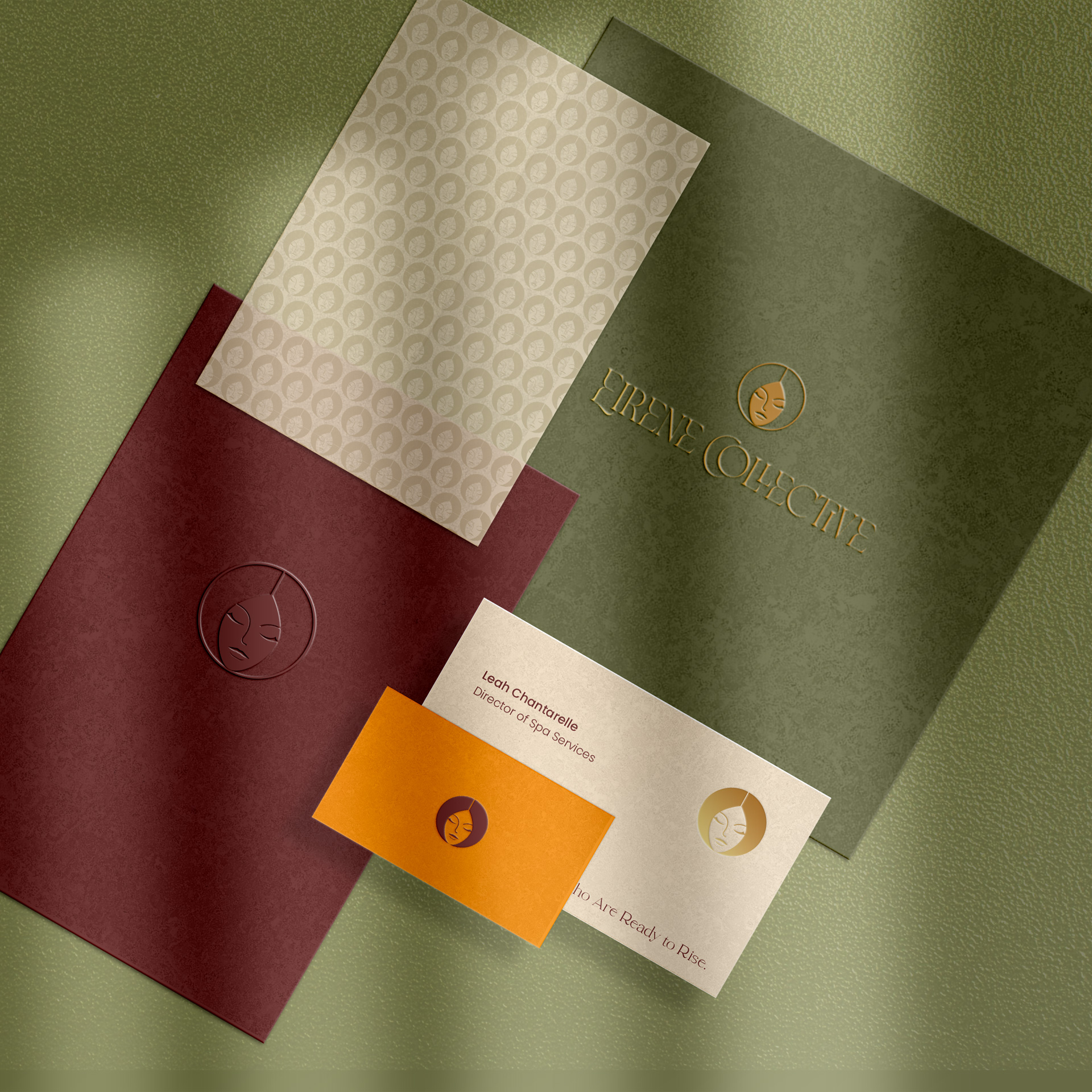 Outcome: The Eirene Collective brand captures the essence of luxury wellness for women — sophisticated, soulful, and transformative. The identity provides a strong foundation for collateral such as spa menus, retreat brochures, packaging, and digital marketing assets, positioning the brand as a trusted destination for women seeking empowerment and renewal.