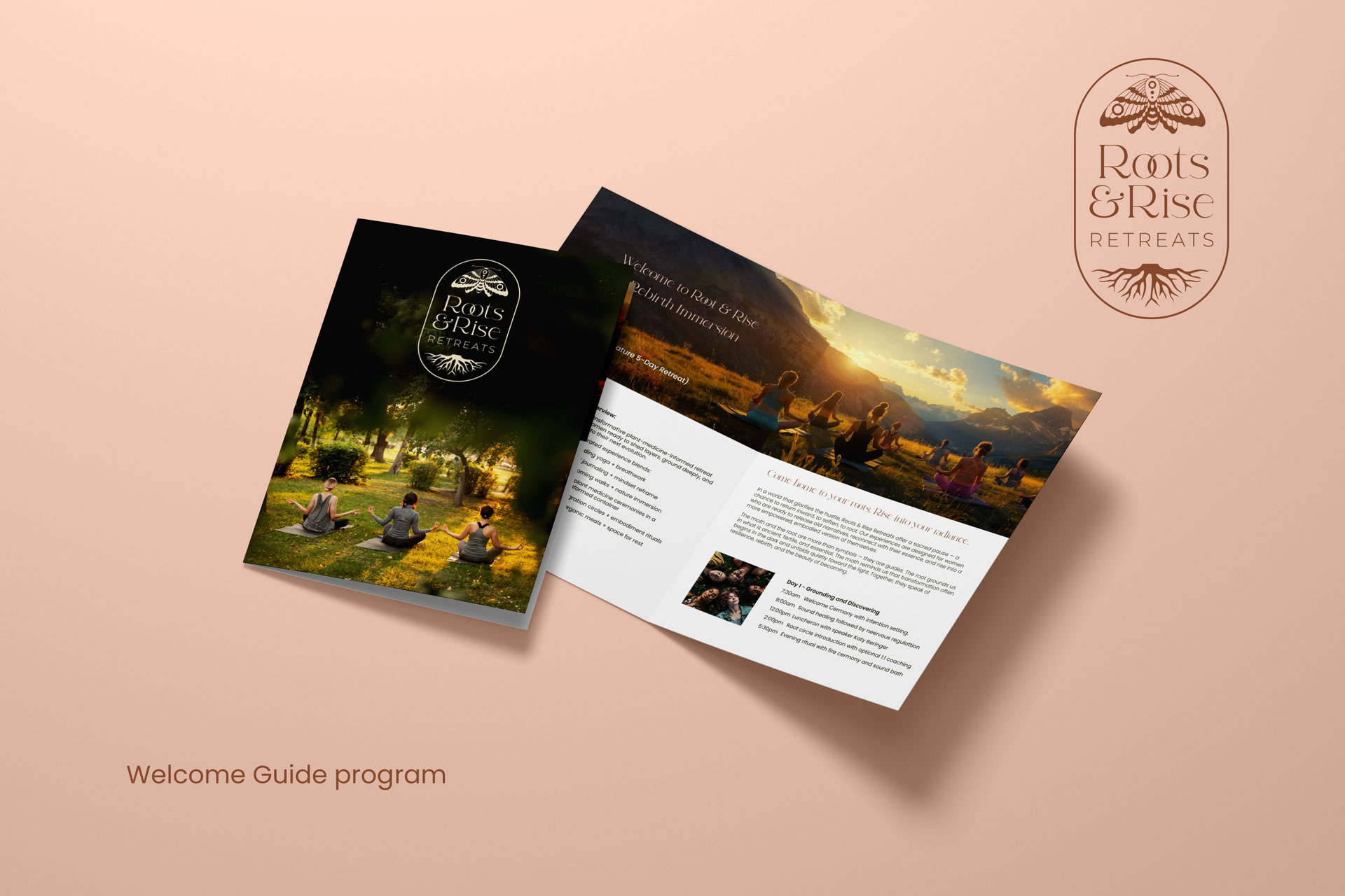 Roots & Rise Retreats had a powerful mission: to help women reclaim their radiance by rooting into themselves and rising beyond emotional wounds and societal expectations. While the retreat experiences were deeply transformative, the brand itself lacked visual cohesion, symbolic meaning, and the high-end aesthetic to reflect the depth of the offering.
